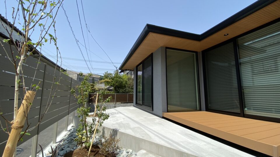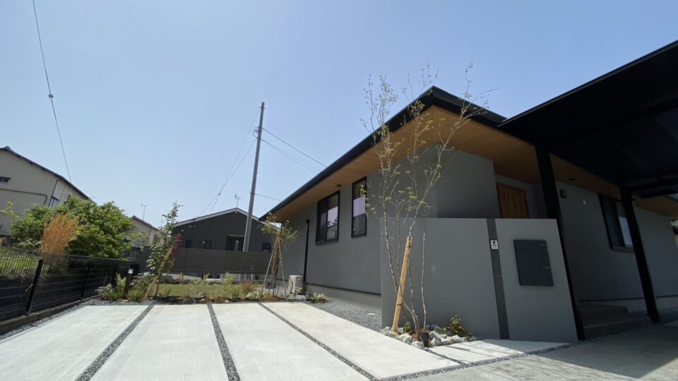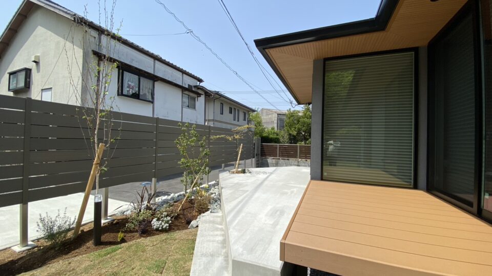 直線美を意識した外観はすっきりとした印象を与え、統一感に繋がりまとまりあるスタイリッシュな外構となりました。